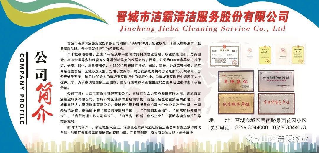 20年砥礪奮進,從一個租賃兩間辦公室名不見經(jīng)傳的小公司,成長為擁有擁有辦公場所1500余平米,總資產(chǎn)逾千萬元,員工1500余人的晉城市家政行業(yè)的標桿企業(yè),潔霸完成了精彩跨越,“做清潔行業(yè)的霸主”的發(fā)展定位從未改變。