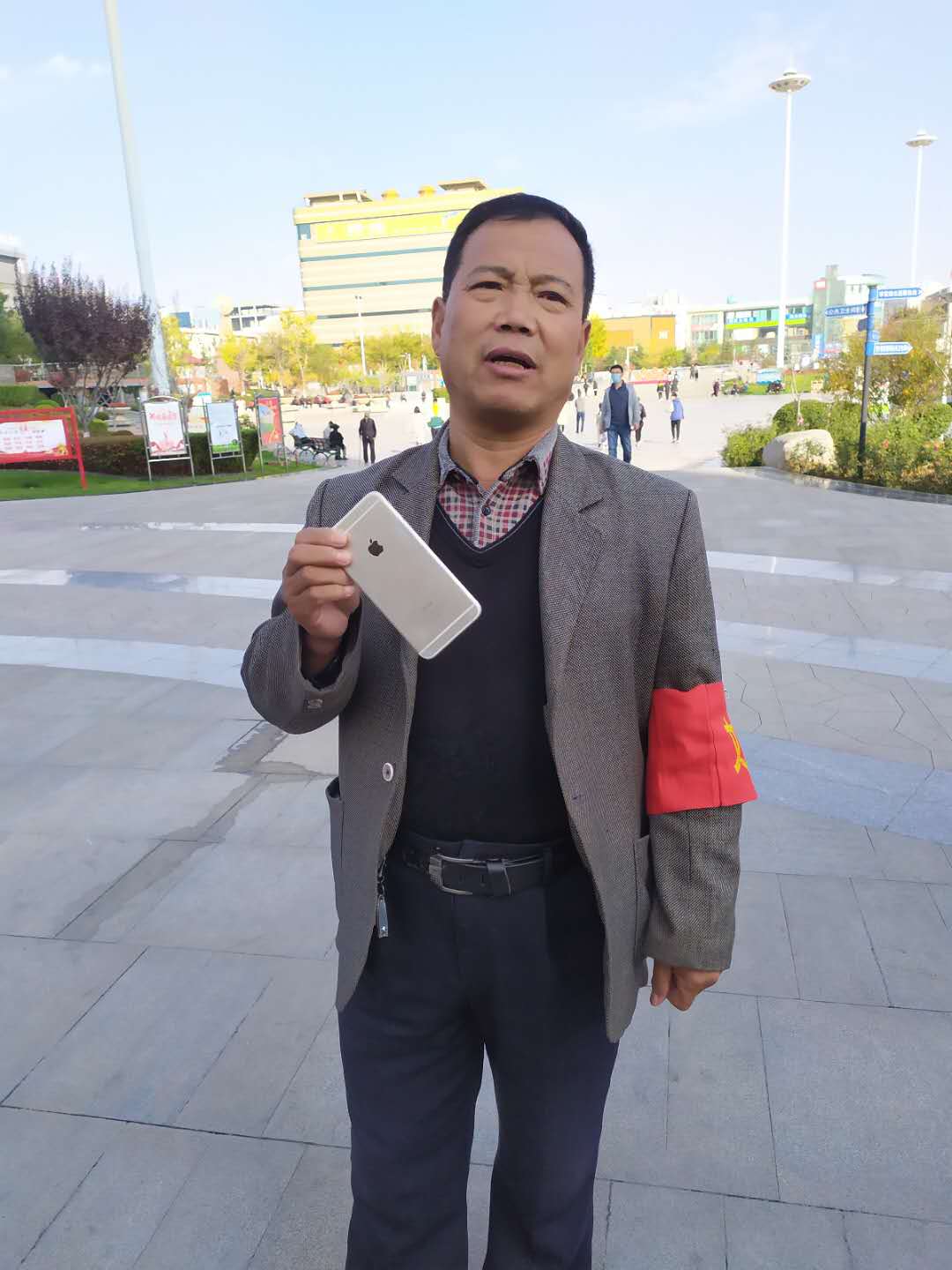 2020年10月31日下午2時(shí)30分左右,潔霸公司保安人員王紅廷師傅在人民廣場西門執(zhí)勤過程中,發(fā)現(xiàn)臺(tái)階上被人丟失的一部銀灰色的蘋果手機(jī),失主已經(jīng)離開,為防止手機(jī)被無關(guān)人員撿走,他趕忙將手機(jī)交至人民廣場辦公室進(jìn)行登記備案,并且想到失主一定焦急萬分,隨后到西門等待失主回來找手機(jī),一個(gè)小時(shí)以后,一個(gè)面色匆匆的小姑娘來到了西門說尋找丟失的手機(jī),王紅廷師傅把她領(lǐng)到廣場辦公室,讓她對(duì)自己丟失的手機(jī)進(jìn)行一個(gè)簡單直觀的描述后,當(dāng)場和廣場辦公室人員一同確認(rèn)這個(gè)小姑娘就是手機(jī)的主人,面對(duì)丟而復(fù)得的手機(jī),小姑娘激動(dòng)地說,回來找只是僥幸心理,一直想的是手機(jī)應(yīng)該早被人拿走了,沒想到真的就找到了,無數(shù)次的真誠地和王紅廷師傅說著謝謝!王紅廷師傅用簡樸的語言說,換了誰都一樣,大家都會(huì)這么做!