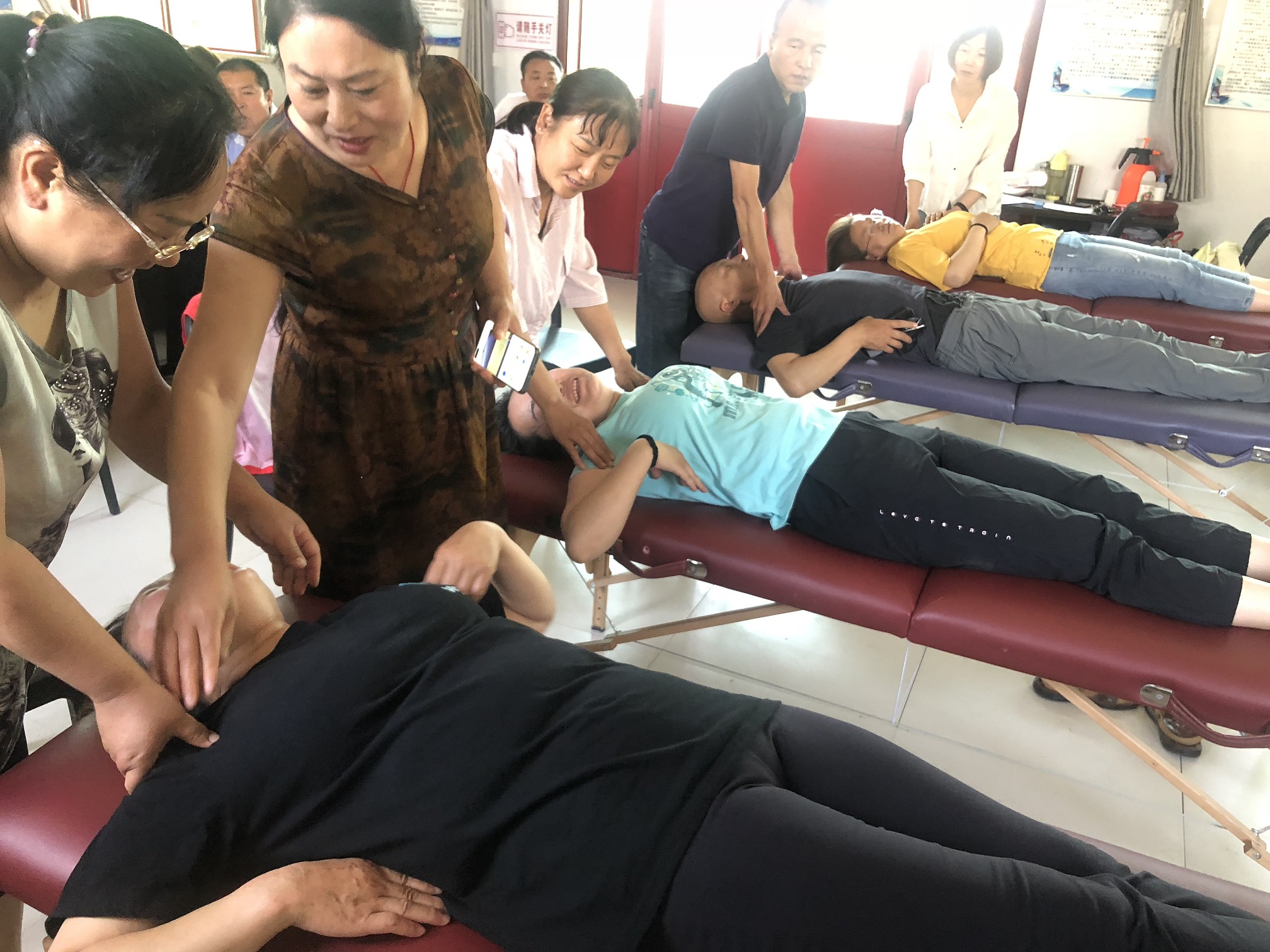 此次保健按摩師培訓(xùn),我校聘請了有多年按摩經(jīng)驗(yàn)和豐富授課經(jīng)驗(yàn)的按摩老師給學(xué)員講課。培訓(xùn)過程中,采用理論和實(shí)操相結(jié)合的培訓(xùn)形式。老師先將按摩理論知識教給學(xué)員,再將按摩流程演示給學(xué)員看,邊操作邊講解,再讓學(xué)員們動(dòng)手實(shí)際操作,老師在一旁指導(dǎo),及時(shí)糾正學(xué)員們不正確的按摩手法和流程。經(jīng)過7天的按摩培訓(xùn),學(xué)員們基本都掌握了頭部、面部、胸腹部、背部、腿部等處的按摩手法和按摩流程。